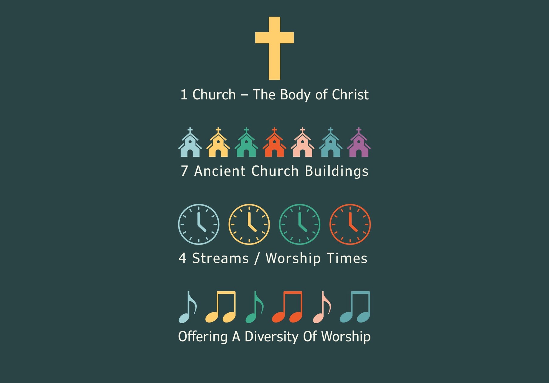 As a group of parishes, we are encouraged to see ourselves as one church – the people of God – with seven ancient church buildings that host four service streams. (These are very much in-person services and not to be confused with online streaming.)